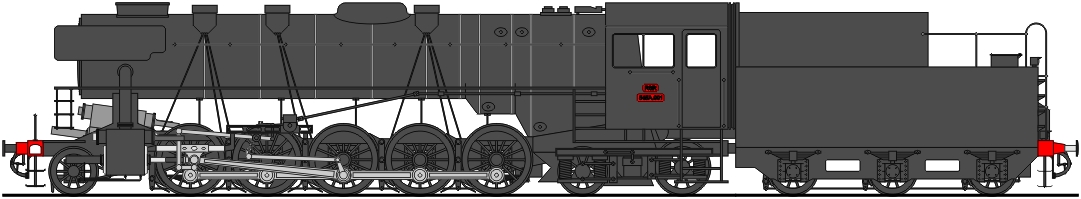 This bizarre machine was intended to test the efficacy of the newly-designed Otehval piston valves. Ferenç Otehval was a development draughtsman on Tešlov's team whose creativeness did not always endear him to his boss, who believed that the company's staff should spend their time on work that was of recognisable use. However, the design of piston valve that Otehval thought out (as legend has it, while being nagged by his wife) did show some promise and after much persistent lobbying by Otehval, Tešlov agreed in principle to give it a try but could not make up his mind about a suitable "guinea pig". Not one to miss a good opportunity when he saw it, Otehval took his boss's indecision as carte blanche to design a new locomotive. He had a set of drawings finished in a couple of months by dint of much overtime and burning of midnight oil and proudly presented his opus. What Tešlov thought of this exercise is not on record; suffice it to say that Otehval's name never cropped up in RSR records or minutes again.