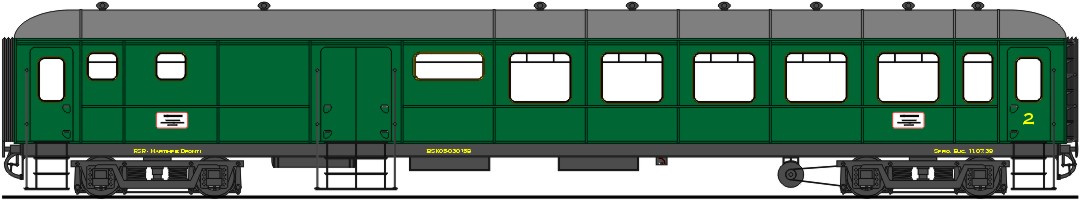 The avant-garde series of coaches designed by Jochann Dugehrie in 1935 did not find favour with all the travelling public. Complaints about weird shapes and quaint styling abounded. So it was that with heavy heart Dugehrie set about producing a series of new stock of much more staid appearance. The interiors were still modern by the standards of the day but less trendy, as one would say today. Certainly they offered the ultimate in travelling comfort, with reclining seats, air-conditioning and lightweight alloy fittings. The monocoque coachwork was abandoned, increasing the weight per coach to some 35 tonnes. The Commonwealth bogies, concertina corridor gangways and dynamo-driven lighting of the 1935 stock were retained. The 1938 stock, being quite sturdily built, survived the hostilities reasonably well and served the RSR for many more years, the last examples being taken out of service in the late 1980s.